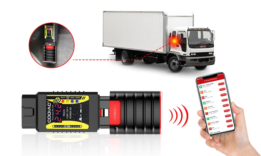 We only Provide GT106 12V to 24V adapter, You need to get diagnostic software for trucks and other heavy duty vehicles.